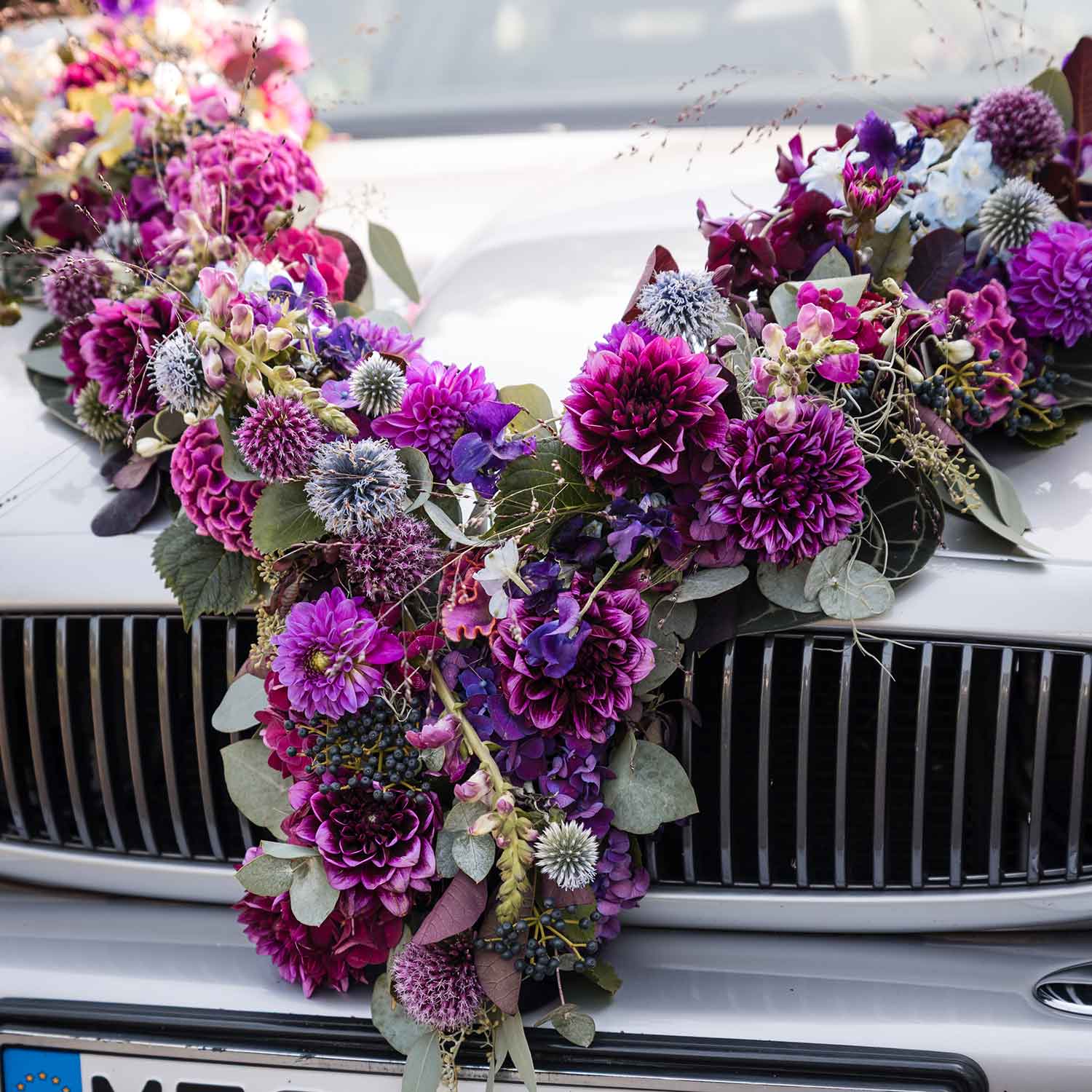 - Blumenkränze oder Gestecke für Motorhaube / Türgriffe