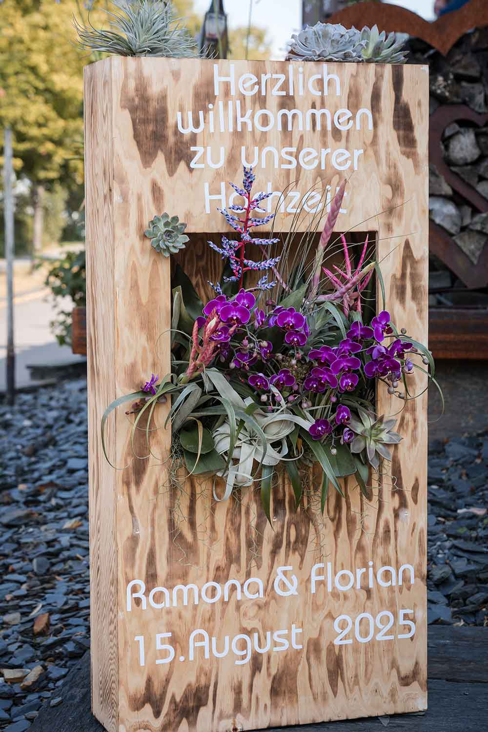 - floraler Willkommensgruß beim Eingang / Sitzplan